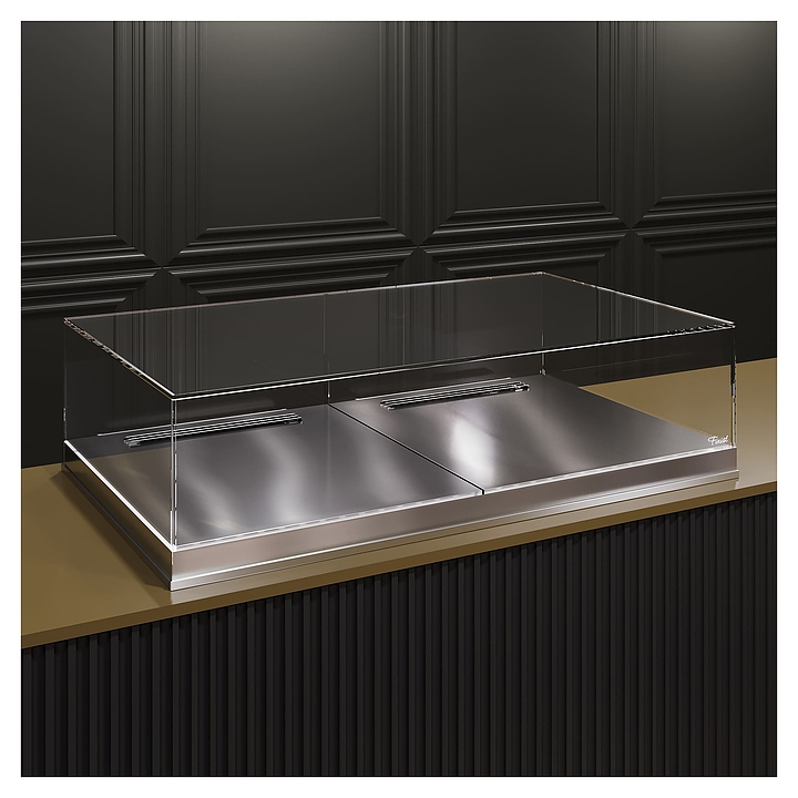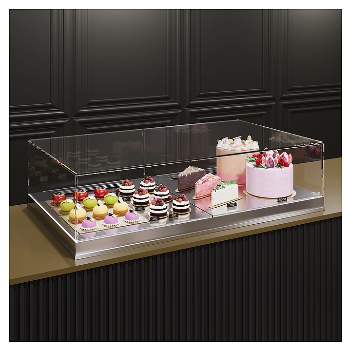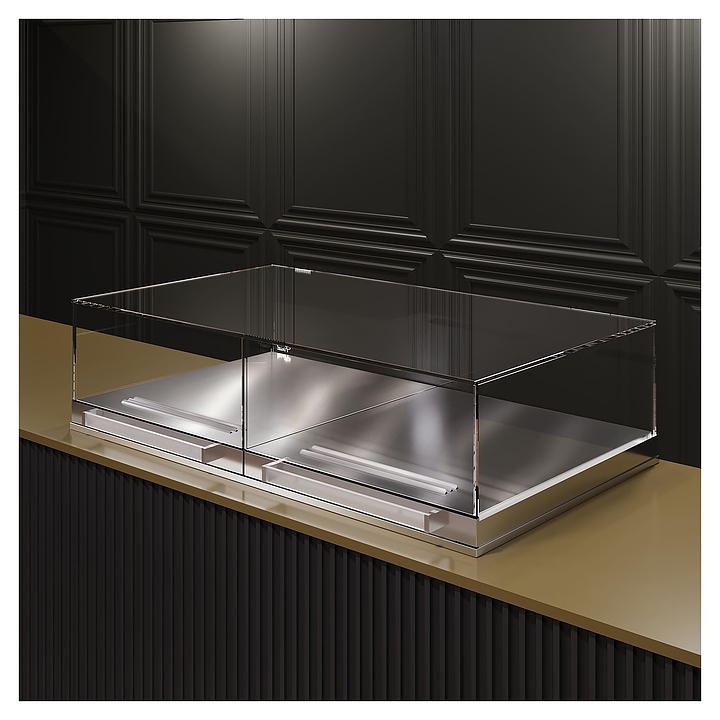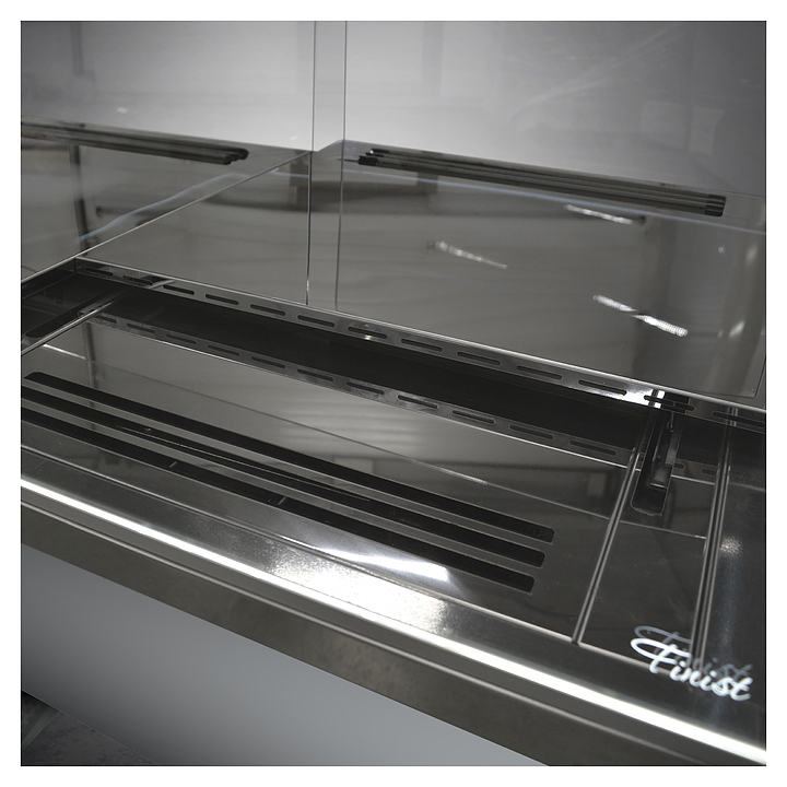 Встраиваемая горизонтальная кондитерская витрина Finist Glassier SLIDE DUO GSD-15/6/3 предназначена для кратковременного хранения, предпродажной демонстрации и эффектной подачи кондитерских изделий на предприятиях общественного питания и торговли. Модель оснащена закрытой холодильной камерой, скрытыми под основанием камеры агрегатным отсеком, кабелем питания с вилкой и электромеханической панелью управления. Основание камеры и выдвижные поддоны выполнены из высококачественной нержавеющей стали с серебристой зеркальной поверхностью, корпус агрегатного отсека – из стали с антикоррозийным покрытием белого цвета (RAL 9016). Особенности: