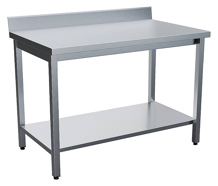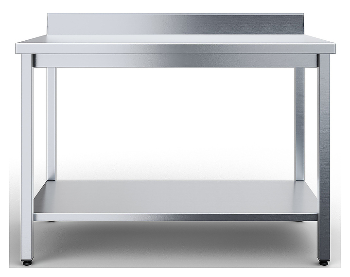 Стол Rada СТППЧ-10/6-С предназначен для обработки продуктов питания, раскатки теста и хранения кухонной техники на предприятиях общественного питания и пищевой промышленности. Модель оснащена регулируемыми по высоте ножками, съемным бортом и сплошной полкой. Каркас выполнен из профильной трубы квадратного сечения нержавеющей стали AISI 430, столешница и полка из нержавеющей стали AISI 430 толщиной 0,8 мм, столешница усилена подложкой из фанеры толщиной 16 мм. Особенности: