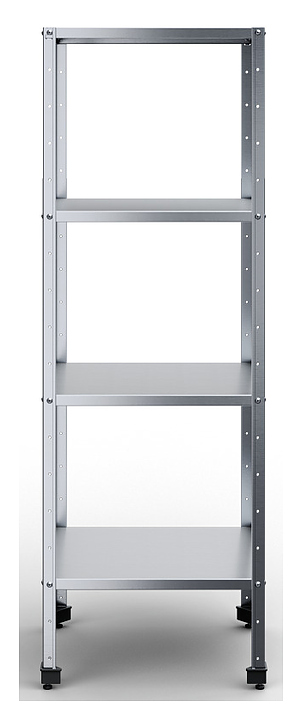Кухонный стеллаж Rada СКСПЧ-7/5/0,4/0,2/18-4С предназначен для хранения посуды, инвентаря и сухих продуктов на предприятиях общественного питания и торговли. Разборный каркас выполнен из тубы 40x20 мм нержавеющей стали AISI 430, полки - из нержавеющей стали AISI 430. Особенности:
