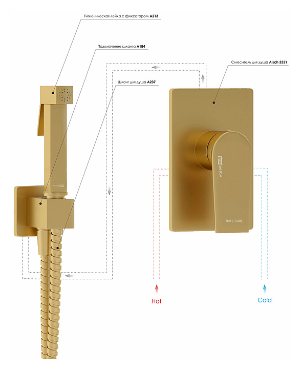 Встраиваемый комплект для биде Wasserkraft Aisch A5551.184.237.213 матовое золото