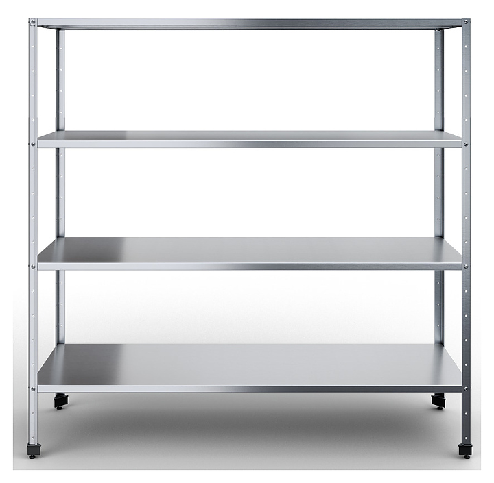 Кухонный стеллаж Rada СКСПЧ-20/4/0,4/0,2/18-4С предназначен для хранения посуды, инвентаря и сухих продуктов на предприятиях общественного питания и торговли. Разборный каркас выполнен из тубы 40x20 мм нержавеющей стали AISI 430, полки - из нержавеющей стали AISI 430. Особенности: