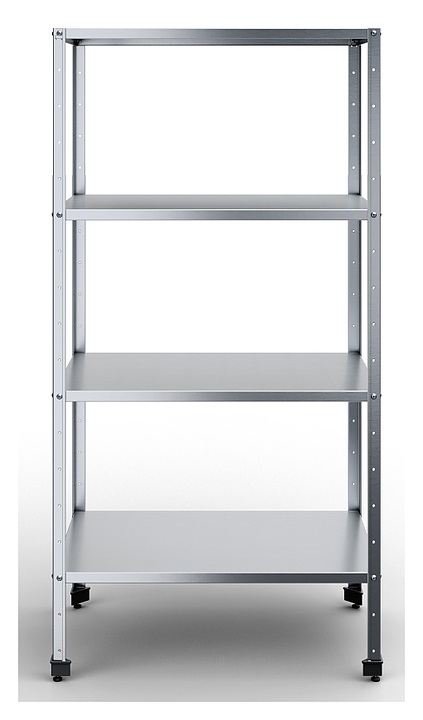Кухонный стеллаж Rada СКСУЧ-9/5/18-4С предназначен для хранения посуды, инвентаря и сухих продуктов на предприятиях общественного питания и торговли. Разборный каркас выполнен из уголка 40x40 мм нержавеющей стали AISI 430, полки - из нержавеющей стали AISI 430. Особенности: