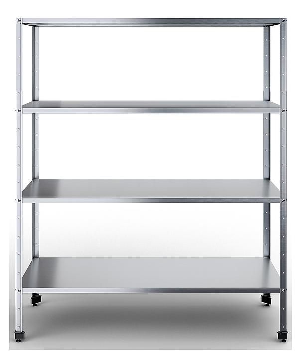 Кухонный стеллаж Rada СКСУЧ-15/6/18-4С предназначен для хранения посуды, инвентаря и сухих продуктов на предприятиях общественного питания и торговли. Разборный каркас выполнен из уголка 40x40 мм нержавеющей стали AISI 430, полки - из нержавеющей стали AISI 430. Особенности: