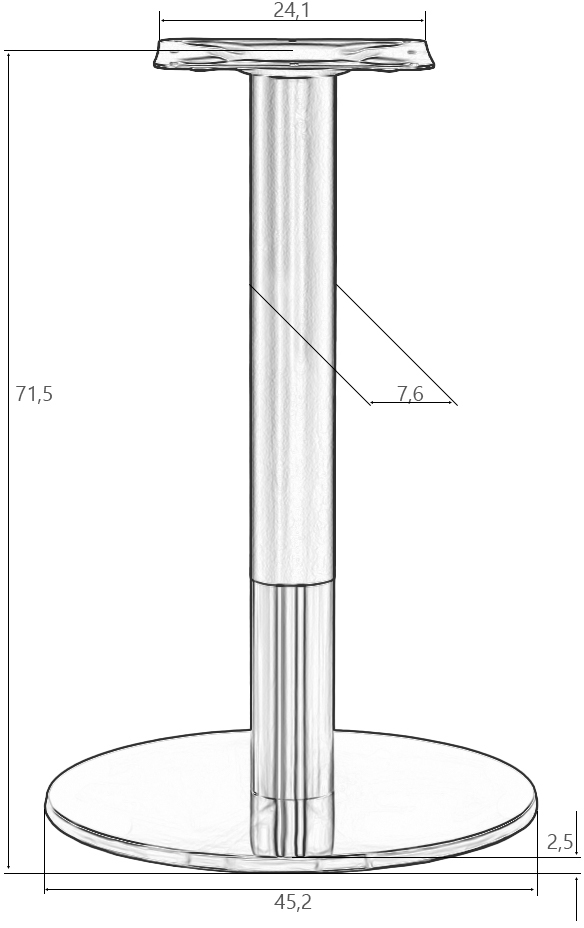 Подстолье обеденное DOBRIN LUCIANO LMS-8001-2 используется в качестве опоры для столешницы обеденного стола в кафе, ресторанах и на других предприятиях общественного питания и торговли. Модель оснащена регулировкой под неровный пол. Изделие выполнено из металла и пластика. Особенности: