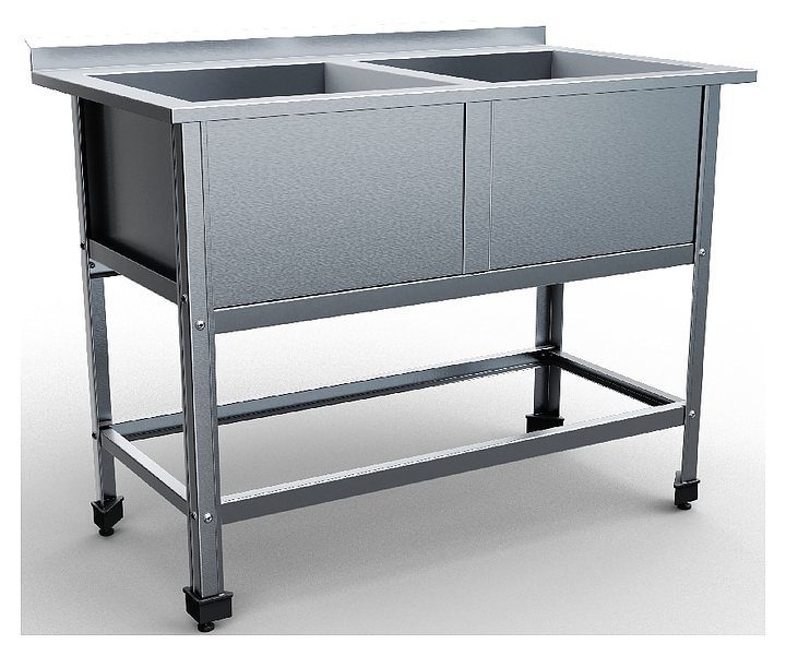 Моечная ванна Rada ВМСВПЧ-2-9,5/5,3/8,5 используется на производствах и предприятиях общественного питания. Ванны выполнены из нержавеющей стали AISI 430, каркас из уголка 40х40 мм нержавеющей стали AISI 430. Особенности:
