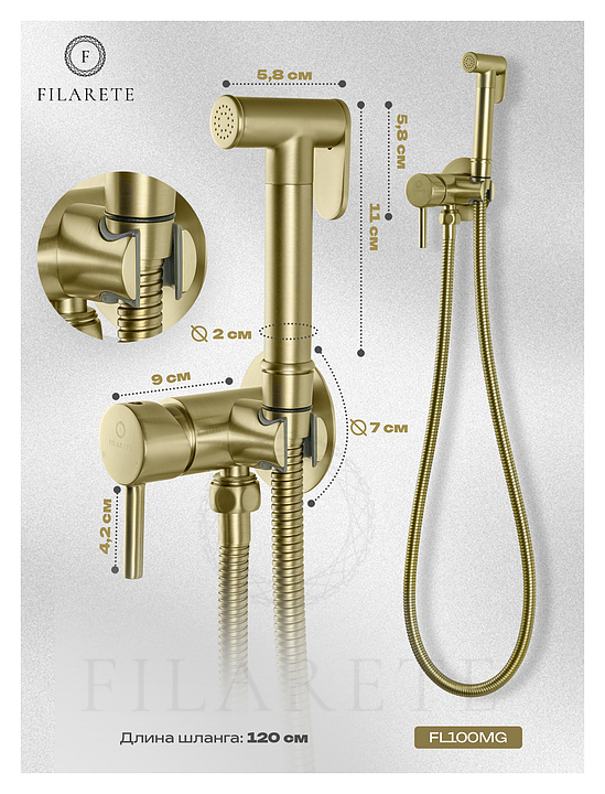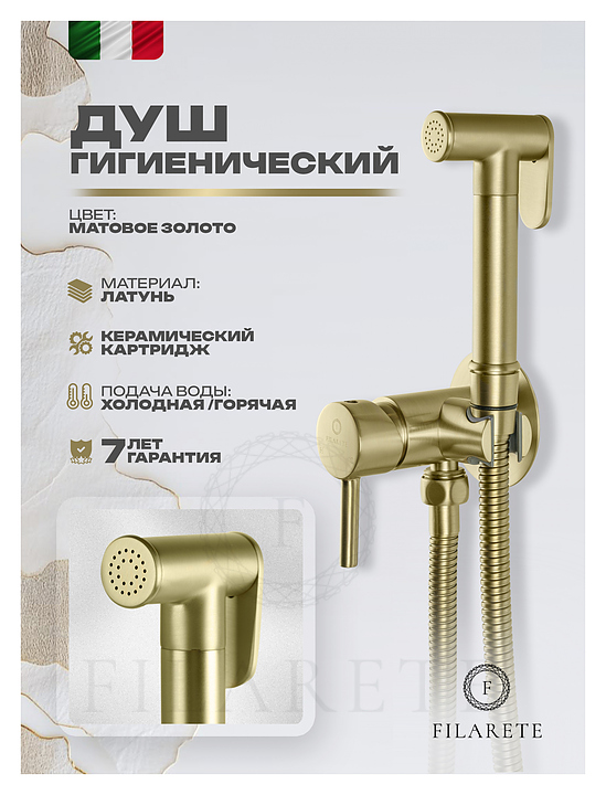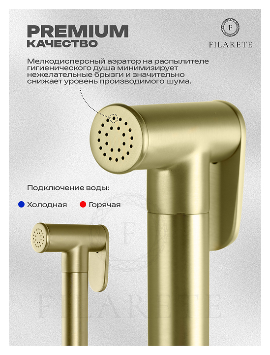 Душ гигиенический со смесителем FILARETE Roun FL100MG, матовое золото
