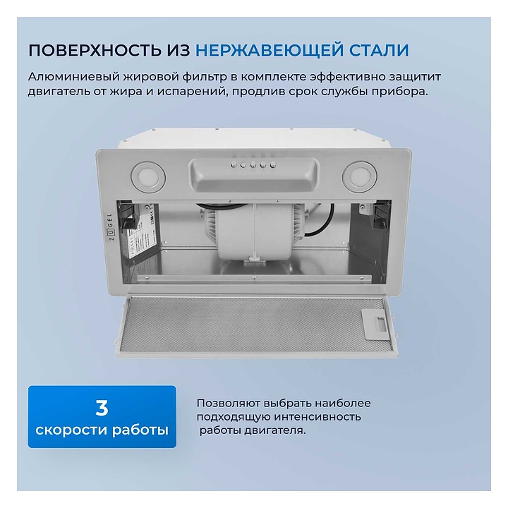 Кухонная вытяжка Zugel ZHI521X используется в домашних условиях для очистки воздуха от продуктов горения, копоти и запахов в процессе приготовления пищи путем принудительной вентиляции. Модель оснащена электронным управлением с кнопками. Светодиодные лампы гарантируют яркое и равномерное освещение рабочей зоны. Корпус выполнен из стали, жировой фильтр - из алюминия. В комплект поставки входит жироулавливающий фильтр. Особенности: