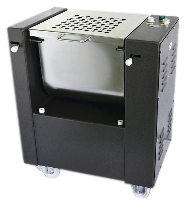 Тестомесильная машина ТОРГМАШ (Барановичи) МТК-30 предназначена для замеса плотного теста низкой влажности для пельменей, хинкалей, вареников, чебуреков и лаваша, домашней лапши и пасты на предприятиях общественного питания, торговли, в пекарнях и кондитерских. Дежа для приготовления теста оснащена валом с рабочим месильным органом и крышкой для защиты от вращающихся частей машины. Модель выполнена из нержавеющей стали. Особенности: