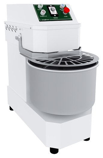 Спиральный тестомес Пищевые Технологии ТД-30 предназначен для замешивания теста с различной основой и консистенцией для выпечки хлебобулочных или кондитерских изделий на предприятиях общественного питания и торговли. Модель оснащена электромеханической системой управления и таймером замеса (максимальное время 30 минут). Корпус выполнен из крашеного металла, дежа и месильный орган - из нержавеющей стали. Дополнительные характеристики: