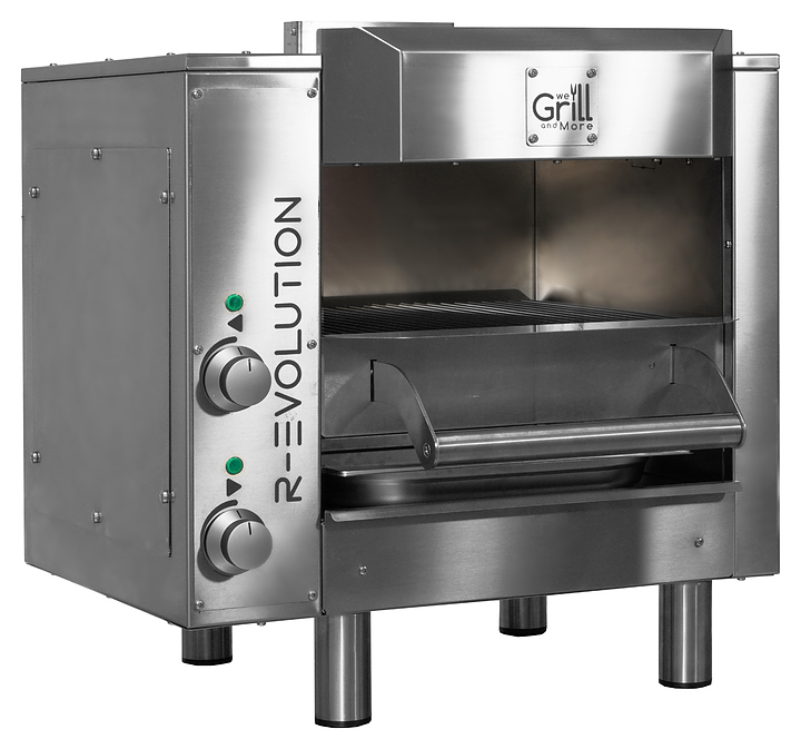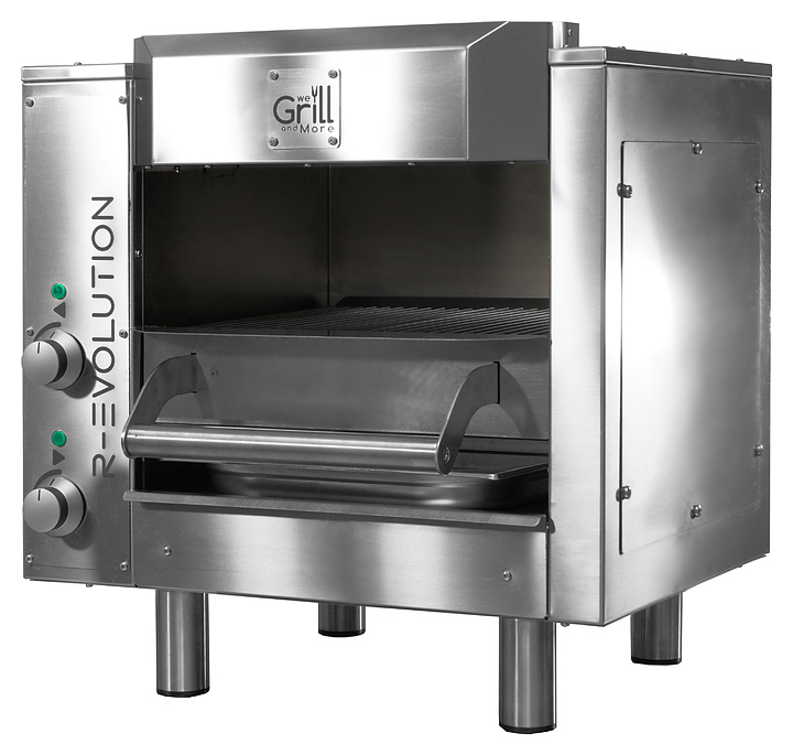 Гриль барбекю WE GRILL & MORE WGREV.E2 предназначен для приготовления мяса, рыбы, куриных крылышек на предприятиях общественного питания и торговли. Усовершенствованный бройлерный гриль, использующий инфракрасную технологию, которая обеспечивает быстрое и точное приготовление, отсутствие дыма и неприятных запахов. Корпус и выдвижная решетка выполнены из нержавеющей стали AISI 304. Особенности: