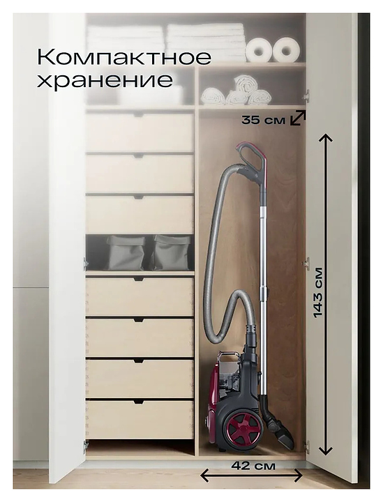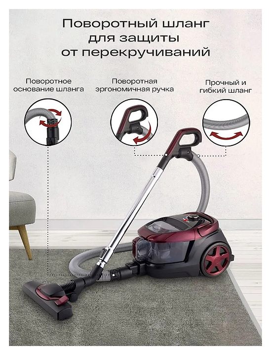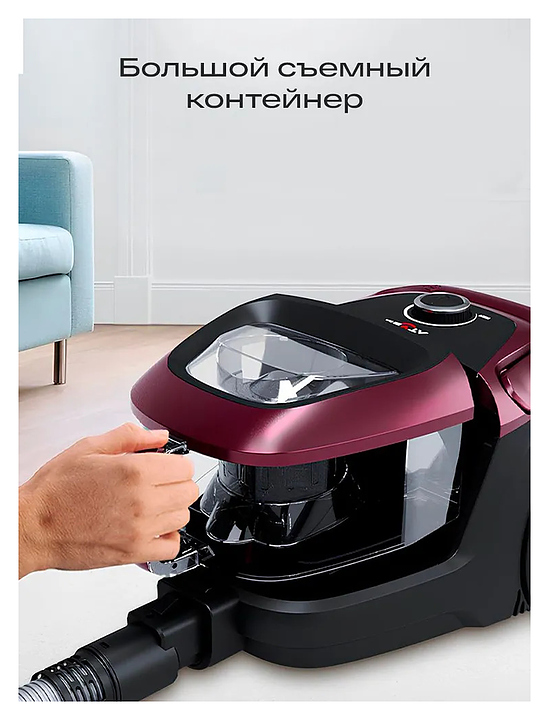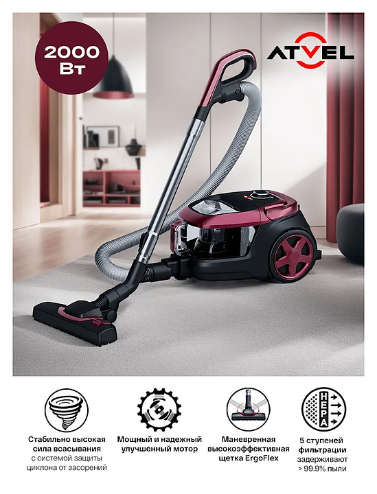 Пылесос для дома с контейнером Atvel DX2000 черный, малиновый