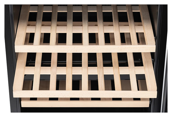 Винный шкаф VARD WCI6DS предназначен для демонстрации, хранения и создания оптимальных условий для сохранения вкусовых свойств вина в бутылках на предприятиях общественного питания, торговли, в барах, ресторанах, специализированных магазинах, частных домах или квартирах. Модель оснащена 2 температурными зонами, сенсорным управлением на дверце и 3 полками. Дверца открывается легким касанием при помощи механизма Touch-to-open. Благодаря особому расположению верхней полки винный шкаф позволяет разместить бутылки игристых вин или шампанского, которые отличаются более широким дном. Дверца выполнена из двойного тонированного стекла с УФ-фильтром для поддерживания требуемой температуры и защиты от вредного внешнего воздействия, полки - из бука. Особенности:
