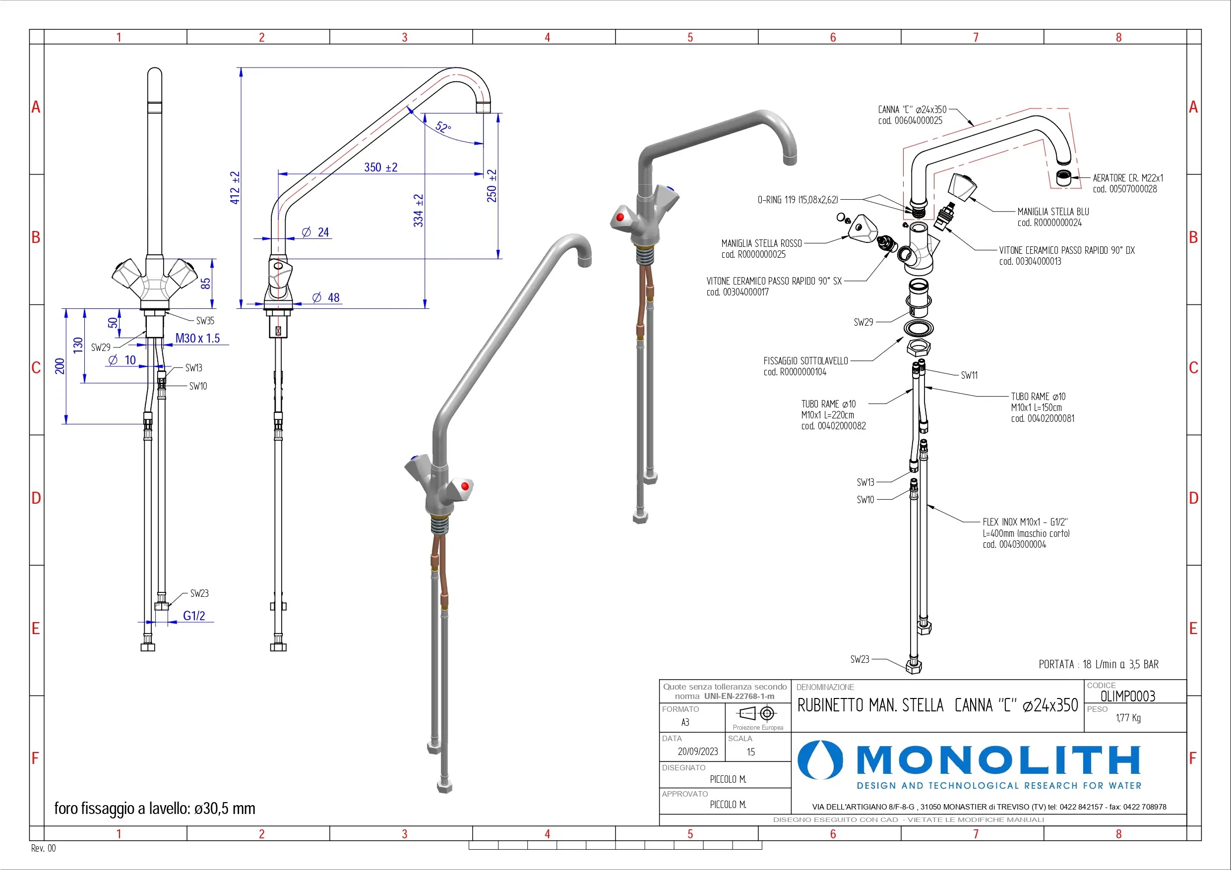 Смеситель Monolith OLIMPO003 предназначен для ежедневного использования с целью подачи воды оптимальной температуры на кухнях и в санитарных узлах предприятий общественного питания и торговли. Внешние компоненты выполнены из металла с хромированной поверхностью, жесткие трубки подводки – из меди, гибкие шланги подводки – из полимера и нержавеющей стали. Комплектация:
