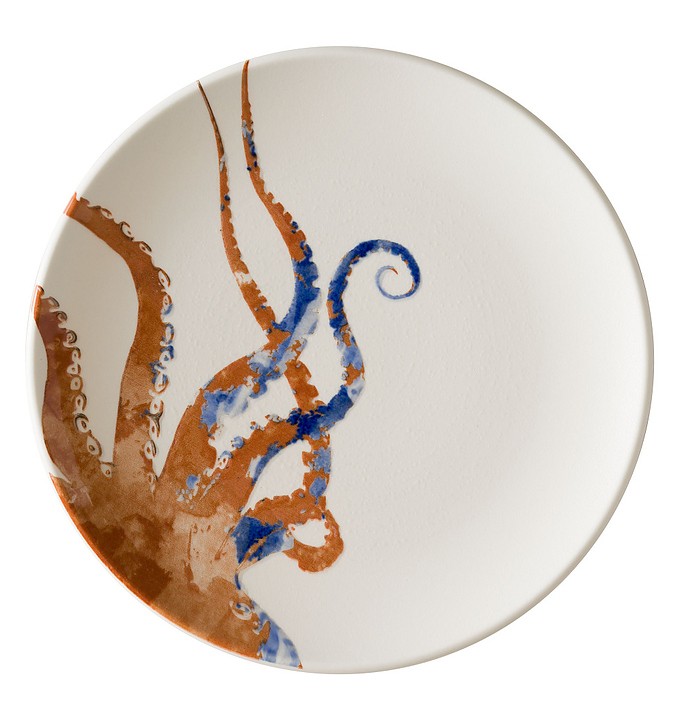 Тарелка Bonna Аквелис осьминог 79392 Гурмэ используется для подачи различных блюд в ресторанах, кафе, на других предприятиях общественного питания и в домашних условиях. Изделие выполнено из высококачественного фарфора, покрытого глазурью, которая не боится ударов и других механических воздействий, на ней не образуются сколы, царапины и трещины. Особенности: