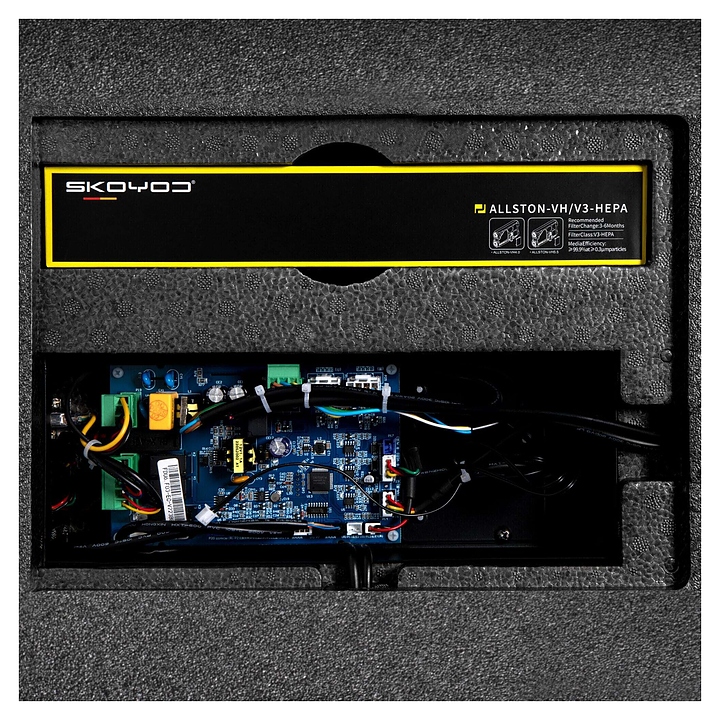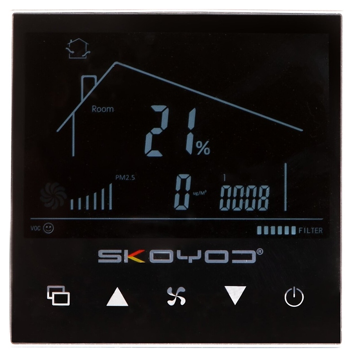 Приточно-вытяжная вентиляционная установка SHUFT SKOYOD Allston-VH5.5 предназначена для организации приточно-вытяжной вентиляции в коммерческих, административных, производственных, жилых или хозяйственных помещениях. Модель оснащена системой приточного и вытяжного вентиляторов, системой фильтрации и встроенной автоматикой, пульт – информативным сенсорным жидкокристаллическим дисплеем управления и индикации. Корпус прибора выполнен из вспененного полипропилена (EPP), соединительные патрубки – из термостойкого пластика, корпус пульта – из черного пластика.
