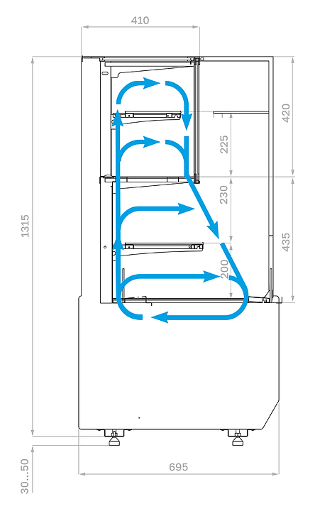 Кондитерская комбинированная витрина Carboma KC70 VV/VV 1,3-2-1 Standard боковина прямая версия 2.0 используется на предприятиях общественного питания и торговли для демонстрации, охлаждения и кратковременного хранения закусок, напитков, пиццы, хлеба, шоколада, выпечки и десертов. Модель оснащена 2 отдельными охлаждаемыми отсеками. Верхний объем оснащен дверьми-сладер с задней стороны витрины и дополнительной полкой. Нижний объем предназначен для самообслуживания и оснащен стационарной выкладкой и навесной полкой. Корпус выполнен из стали, термоизоляция корпуса - из пенополиуретана, остекление - из стеклопакетов, задние створки-слайдер верха - из стеклопакета, задняя стенка низа - из металла, полка из стекла. Особенности:
