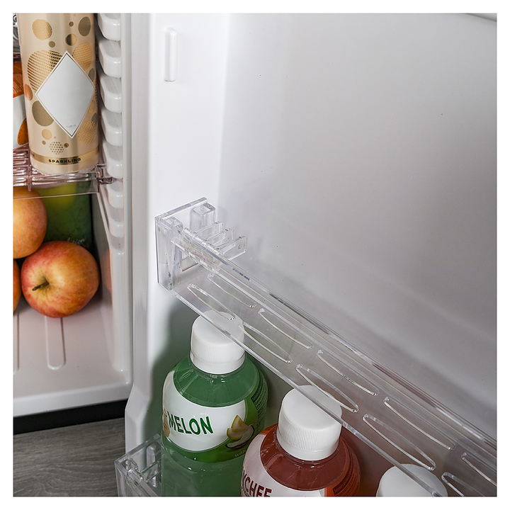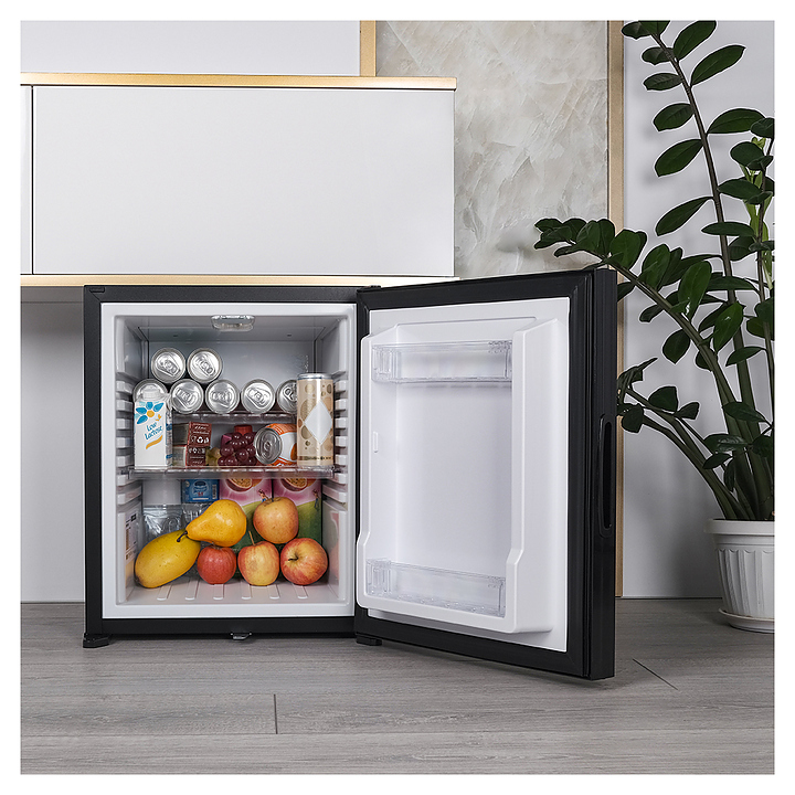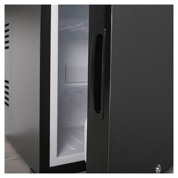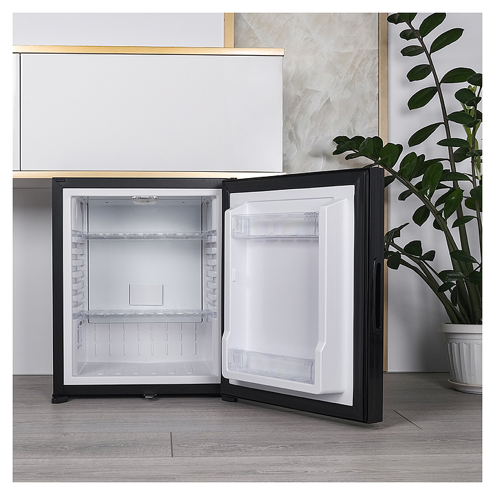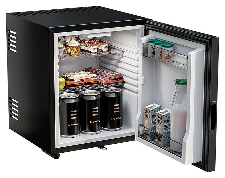 Минибар MEYVEL MMT-30B предназначен для охлаждения и кратковременного хранения скоропортящихся продуктов и напитков в отелях, гостевых домах, офисах или жилых помещениях. Модель оснащена глухой распашной дверью с универсальной ручкой, внутренним освещением, регулируемыми полками и замком. Возможно использовать отдельный элемент интерьера или встроить в мебельный гарнитур, максимально эффективно используя пространство. Гибридная технология обеспечивает равномерное охлаждение, экономичность и бесшумную работу. Автоматическая разморозка избавляет от необходимости вручную удалять наледь, что упрощает уход за устройством. Полки выполнены из пластика, покрытие двери - из матового стекла. Особенности: