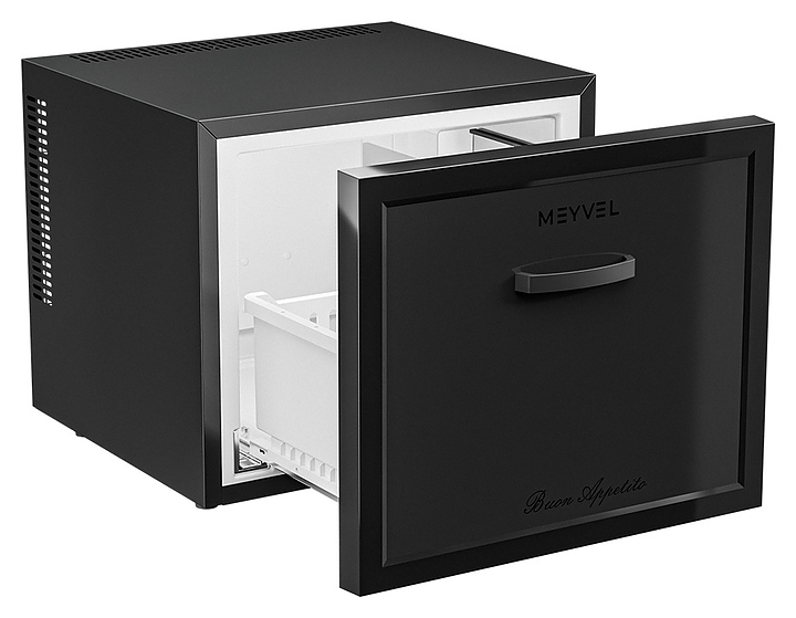 Минибар MEYVEL MMT-Drawer45B предназначен для охлаждения и кратковременного хранения скоропортящихся продуктов и напитков в отелях, гостевых домах, офисах или жилых помещениях. Возможно использовать отдельный элемент интерьера или встроить в мебельный гарнитур, максимально эффективно используя пространство. Гибридная технология обеспечивает равномерное охлаждение, экономичность и бесшумную работу. Автоматическая разморозка избавляет от необходимости вручную удалять наледь, что упрощает уход за устройством. Разделители выполнены из пластика, покрытие корпуса - из металла. Особенности: