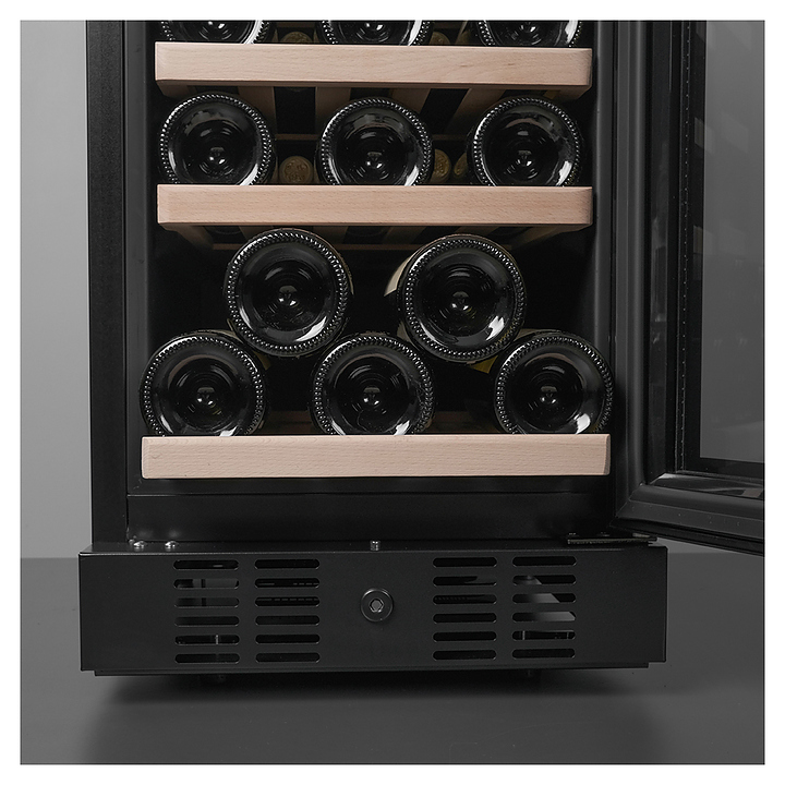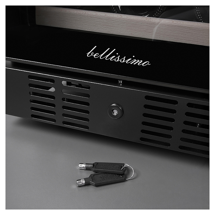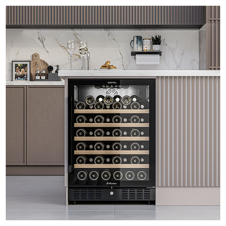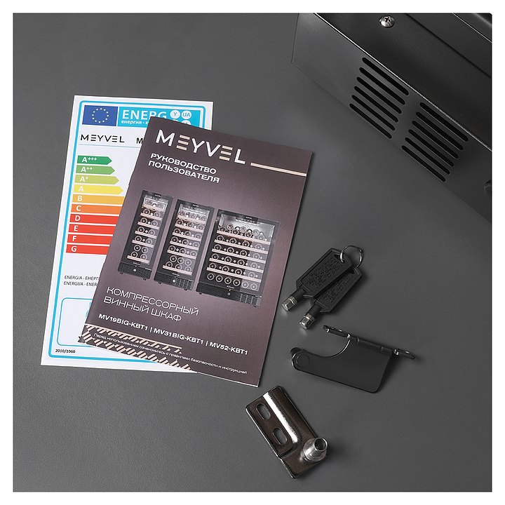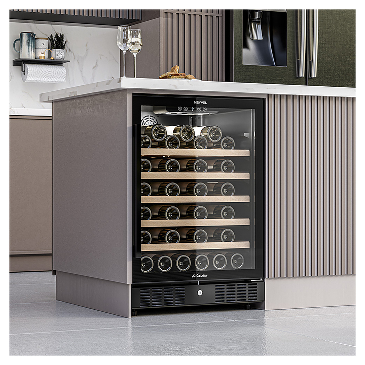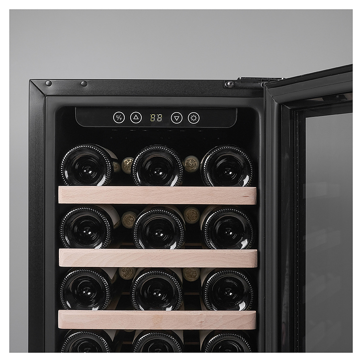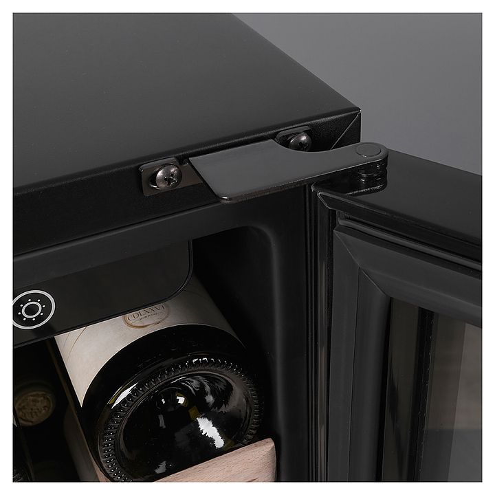 Винный шкаф MEYVEL MV52-KBT1 предназначен для демонстрации, хранения и создания оптимальных условий для сохранения всех вкусовых свойств вина в бутылках на предприятиях общественного питания, торговли, в барах, ресторанах, специализированных магазинах, частных домах или квартирах. Модель оснащена сенсорной панелью управления, электронным термостатом и светодиодной подсветкой белого цвета. Универсальная модель может использоваться как самостоятельный элемент интерьера или встраиваться под столешницу. Корпус выполнен из окрашенной в черный матовый цвет стали, дверь - из черной рамы и тонированного стекла с защитой от ультрафиолетовых лучей, выдвижные полки - из массива бука. Особенности:
