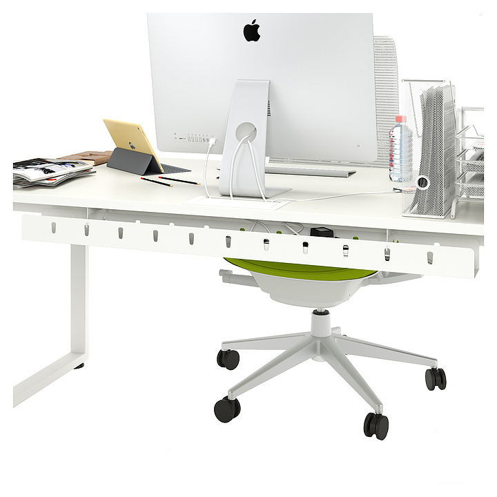 Прямой офисный стол ZAMM 60х30 серии Формат ТР используется для организации рабочего пространства в офисных помещениях. Коллекция отличается современным дизайном и сочетает в себе стиль и функциональность, создавая современное офисное пространство, стимулирующее продуктивность. Модель оснащена столешницей прямоугольной формы и П-образными опорами с подпятниками для компенсации неровностей пола. Каркас выполнен из холоднокатаной стали с покрытием белого цвета, столешница - из высококачественной ламинированной древесно-стружечной плиты (ЛДСП) с поверхностью белого цвета. В комплект поставки входят 3 пропуска для проводов (слева, по центру, справа), с их помощью можно с легкостью менять конфигурацию расположения устройств на столе, а также съёмный кабель-канал, позволяющий удобно и быстро проложить провода от розетки до сетевого фильтра (пилота), который питает все устройства на столе. Особенности:
