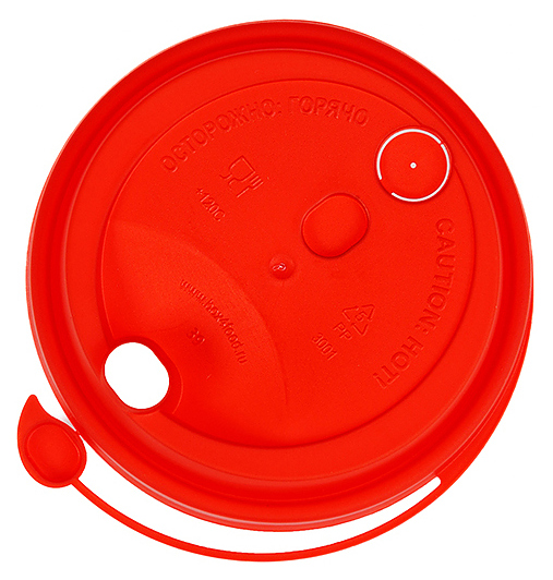 Крышка для стакана 300-500 мл D 90 мм красный с заглушкой и пробивным отверстием для трубочки, пластик ПП