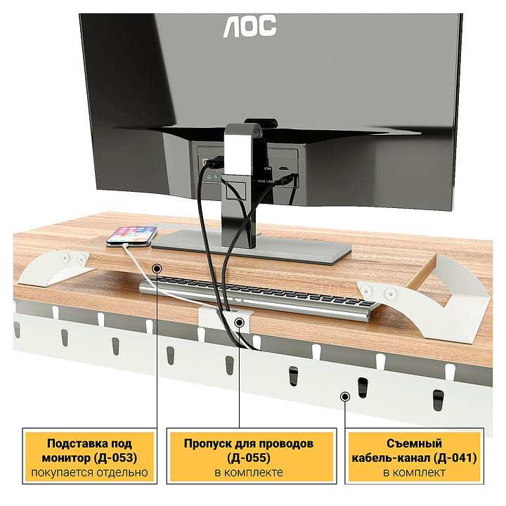 Прямой офисный стол ZAMM 60х30 серии Формат ТР используется для организации рабочего пространства в офисных помещениях. Коллекция отличается современным дизайном и сочетает в себе стиль и функциональность, создавая современное офисное пространство, стимулирующее продуктивность. Модель оснащена столешницей прямоугольной формы и П-образными опорами с подпятниками для компенсации неровностей пола. Каркас выполнен из холоднокатаной стали с покрытием белого цвета, столешница - из высококачественной ламинированной древесно-стружечной плиты (ЛДСП) с поверхностью цвета дуб бардолино. В комплект поставки входят 3 пропуска для проводов (слева, по центру, справа), с их помощью можно с легкостью менять конфигурацию расположения устройств на столе, а также съёмный кабель-канал, позволяющий удобно и быстро проложить провода от розетки до сетевого фильтра (пилота), который питает все устройства на столе. Особенности: