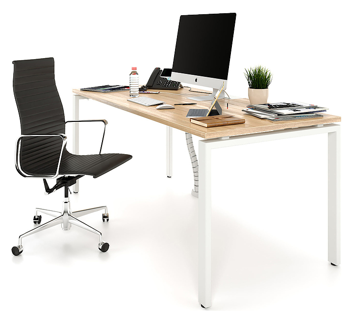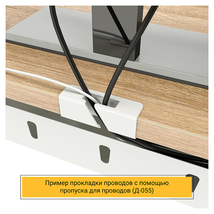 Прямой офисный стол ZAMM 60х30 серии Формат ТР используется для организации рабочего пространства в офисных помещениях. Коллекция отличается современным дизайном и сочетает в себе стиль и функциональность, создавая современное офисное пространство, стимулирующее продуктивность. Модель оснащена столешницей прямоугольной формы и П-образными опорами с подпятниками для компенсации неровностей пола. Каркас выполнен из холоднокатаной стали с покрытием белого цвета, столешница - из высококачественной ламинированной древесно-стружечной плиты (ЛДСП) с поверхностью цвета дуб бардолино. В комплект поставки входят 3 пропуска для проводов (слева, по центру, справа), с их помощью можно с легкостью менять конфигурацию расположения устройств на столе, а также съёмный кабель-канал, позволяющий удобно и быстро проложить провода от розетки до сетевого фильтра (пилота), который питает все устройства на столе. Особенности: