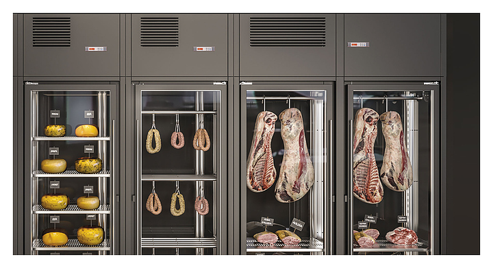 Шкаф для мяса Fagor Meat-Ager FMA-900 B предназначен для охлаждения, вызревания и демонстрации мяса, ветчины, салями и сыра в ресторанах, стейк-хаусах, мясных лавках и гастрономических бутиках. Модель оснащена съёмными решётками с эпоксидным покрытием, регулируемыми по высоте. Корпус выполнен из нержавеющей стали, внутренняя отделка - из нержавеющей стали AISI 304, дверь - из ударопрочного закаленного стекла. Сухое вызревание — это контролируемый процесс выдержки мяса при точно заданной температуре, влажности и циркуляции воздуха. В результате мясо становится более мягким, а его вкус — глубже, насыщеннее и концентрированнее. Такой продукт приобретает высокую гастрономическую ценность и позволяет увеличить маржинальность без роста закупочной стоимости. Комплектация:
