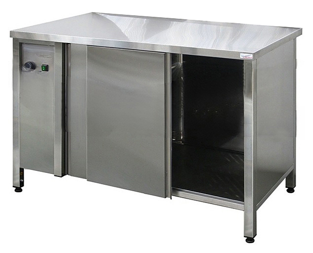 Тепловой стол Finist СТ-18/7 предназначен для подогрева посуды перед сервировкой на предприятиях общественного питания и торговли. Модель оснащена 2 дверьми-купе и перфорированной съемной полкой. Лицевые поверхности корпуса не нагреваются благодаря теплоизоляции стенок и дверей. Корпус, столешница и полка выполнены из нержавеющей стали, задняя стенка - из оцинкованной стали. Особенности: