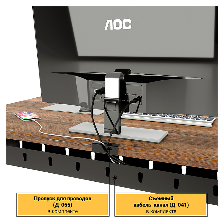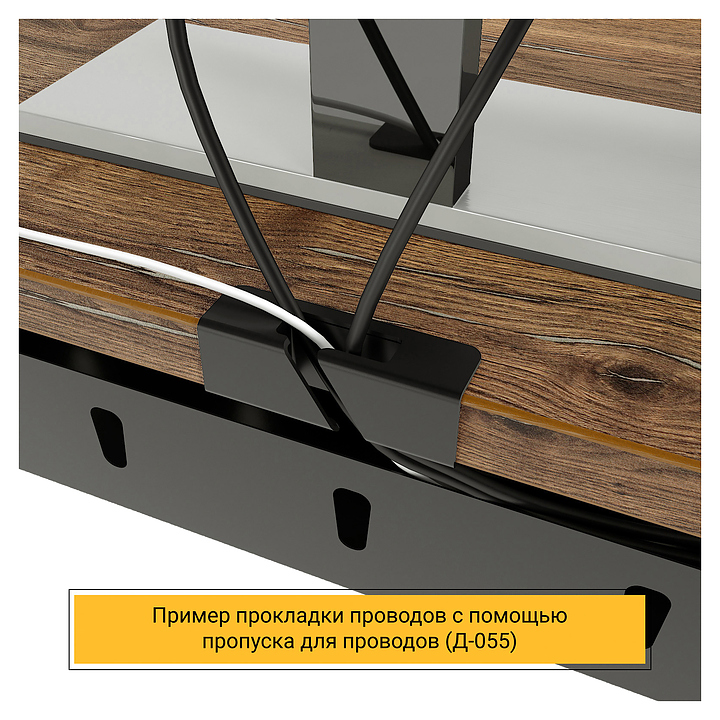 Прямой офисный стол ZAMM 60х30 серии Формат ТР используется для организации рабочего пространства в офисных помещениях. Коллекция отличается современным дизайном и сочетает в себе стиль и функциональность, создавая современное офисное пространство, стимулирующее продуктивность. Модель оснащена столешницей прямоугольной формы и П-образными опорами с подпятниками для компенсации неровностей пола. Каркас выполнен из холоднокатаной стали с покрытием цвета черный муар, столешница - из высококачественной ламинированной древесно-стружечной плиты (ЛДСП) с поверхностью цвета дуб галифакс олово. В комплект поставки входят 3 пропуска для проводов (слева, по центру, справа), с их помощью можно с легкостью менять конфигурацию расположения устройств на столе, а также съёмный кабель-канал, позволяющий удобно и быстро проложить провода от розетки до сетевого фильтра (пилота), который питает все устройства на столе. Особенности: