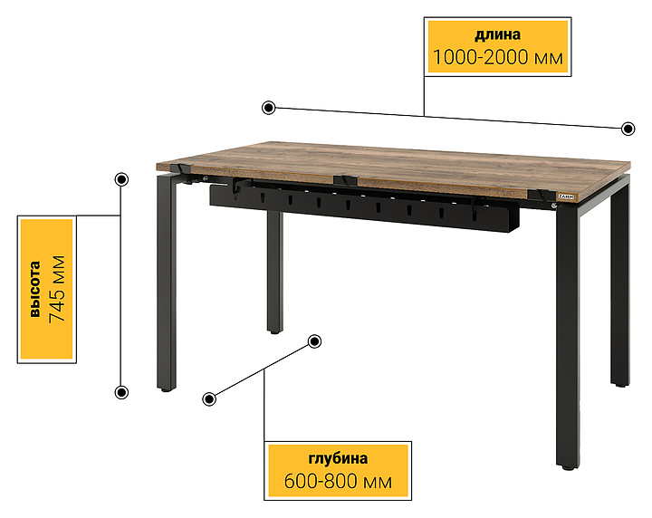 Стол офисный прямой ZAMM Формат 60х30 ТР 1400х600 с пропусками и кабель-каналом, дуб галифакс олово/черный