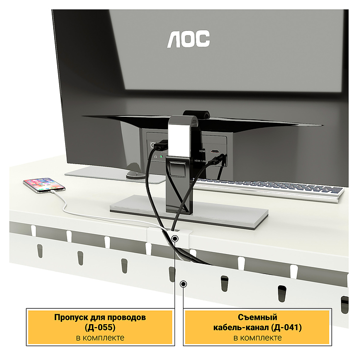 Стол офисный прямой ZAMM Зета 60х30 ТР 1600х700 с пропусками, кабель-каналом и подвесом системного блока, белый