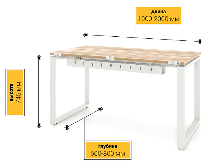Прямой офисный стол ZAMM 60х30 серии Зета ТР используется для организации рабочего пространства в офисных помещениях. Коллекция отличается современным дизайном и сочетает в себе стиль и функциональность, создавая современное офисное пространство, стимулирующее продуктивность. Модель оснащена столешницей прямоугольной формы и О-образной опорой с подпятниками для компенсации неровностей пола. Каркас выполнен из холоднокатаной стали с покрытием белого цвета, столешница - из высококачественной ламинированной древесно-стружечной плиты (ЛДСП) с поверхностью белого цвета. В комплект поставки входят 3 пропуска для проводов (слева, по центру, справа), с их помощью можно с легкостью менять конфигурацию расположения устройств на столе, а также съёмный кабель-канал, позволяющий удобно и быстро проложить провода от розетки до сетевого фильтра (пилота), который питает все устройства на столе. Особенности: