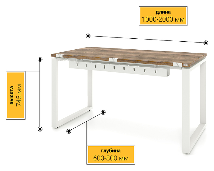 Прямой офисный стол ZAMM 60х30 серии Зета ТР используется для организации рабочего пространства в офисных помещениях. Коллекция отличается современным дизайном и сочетает в себе стиль и функциональность, создавая современное офисное пространство, стимулирующее продуктивность. Модель оснащена столешницей прямоугольной формы и О-образной опорой с подпятниками для компенсации неровностей пола. Каркас выполнен из холоднокатаной стали с покрытием белого цвета, столешница - из высококачественной ламинированной древесно-стружечной плиты (ЛДСП) с поверхностью цвета дуб галифакс олово. В комплект поставки входят 3 пропуска для проводов (слева, по центру, справа), с их помощью можно с легкостью менять конфигурацию расположения устройств на столе, а также съёмный кабель-канал, позволяющий удобно и быстро проложить провода от розетки до сетевого фильтра (пилота), который питает все устройства на столе. Особенности: