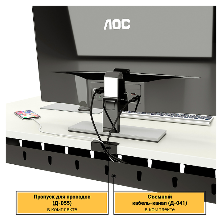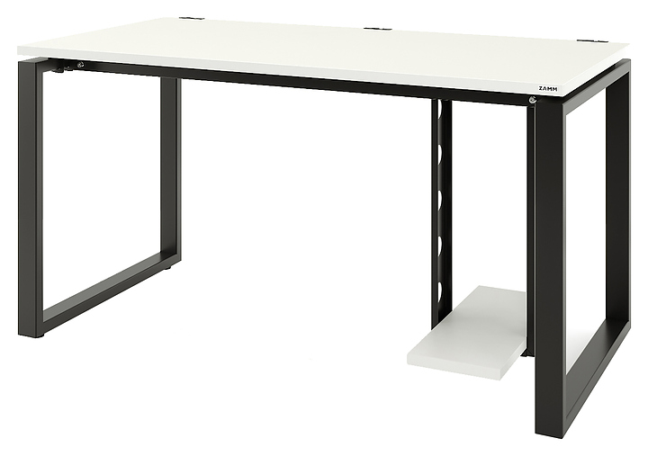 Стол офисный прямой ZAMM Зета 60х30 ТР 1600х700 с пропусками, кабель-каналом и подвесом системного блока, белый премиум/черный муар