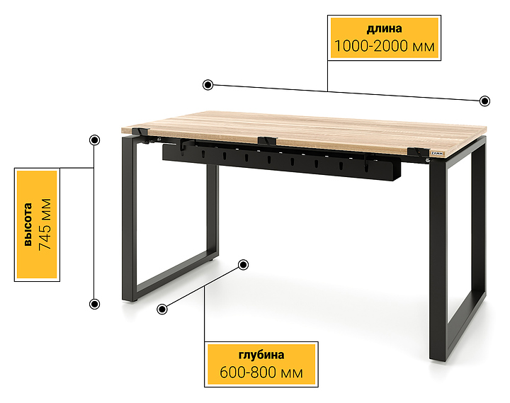 Прямой офисный стол ZAMM 60х30 серии Зета ТР используется для организации рабочего пространства в офисных помещениях. Коллекция отличается современным дизайном и сочетает в себе стиль и функциональность, создавая современное офисное пространство, стимулирующее продуктивность. Модель оснащена столешницей прямоугольной формы и О-образной опорой с подпятниками для компенсации неровностей пола. Каркас выполнен из холоднокатаной стали с покрытием цвета черный муар, столешница - из высококачественной ламинированной древесно-стружечной плиты (ЛДСП) с поверхностью дуб бардолино. В комплект поставки входят 3 пропуска для проводов (слева, по центру, справа), с их помощью можно с легкостью менять конфигурацию расположения устройств на столе, а также съёмный кабель-канал, позволяющий удобно и быстро проложить провода от розетки до сетевого фильтра (пилота), который питает все устройства на столе. Особенности: