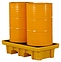 Поддон ТАРА.РУ ПдО Б2 EP 300 используется для хранения и транспортировки 2 бочек или аналогичной наливной тары с техническими жидкостями и локализации их разлива при утечке на складах и в производственных цехах предприятий химической, фармацевтической, текстильной, пищевой, перерабатывающей и других направлений промышленности. Модель прямоугольной формы оснащена вкладываемым паллетом с перфорированной платформой. Емкость выполнена из полиэтилена низкой плотности (LLDPE) желтого цвета. Особенности: