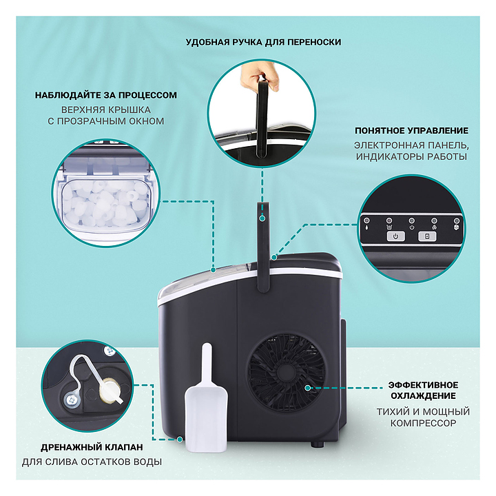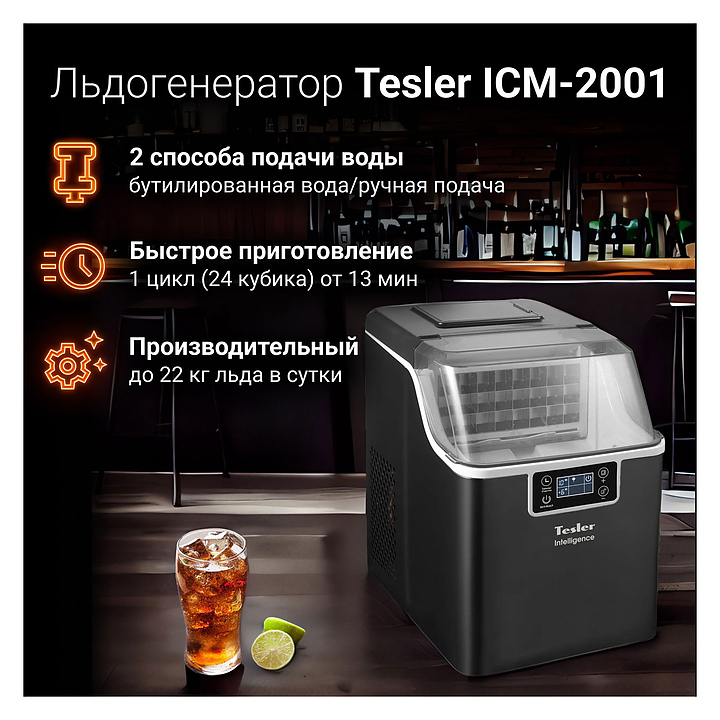 Портативный льдогенератор TESLER ICM-2001 24 кг/сут графит