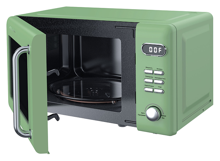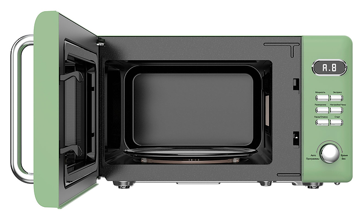 Микроволновая печь TESLER Elizabeth MM-2035 GREEN предназначена для приготовления пищи, подогрева готовых блюд и размораживания полуфабрикатов в частных домах, квартирах, отелях и офисах. Модель оснащена электронным управлением, автоменю на 8 программ, ЖК-дисплеем и встроенными часами и таймером. Корпус выполнен из высококачественной стали, поворотный столик выполнен из стекла, внутренняя отделка покрыта эмалью. Особенности: