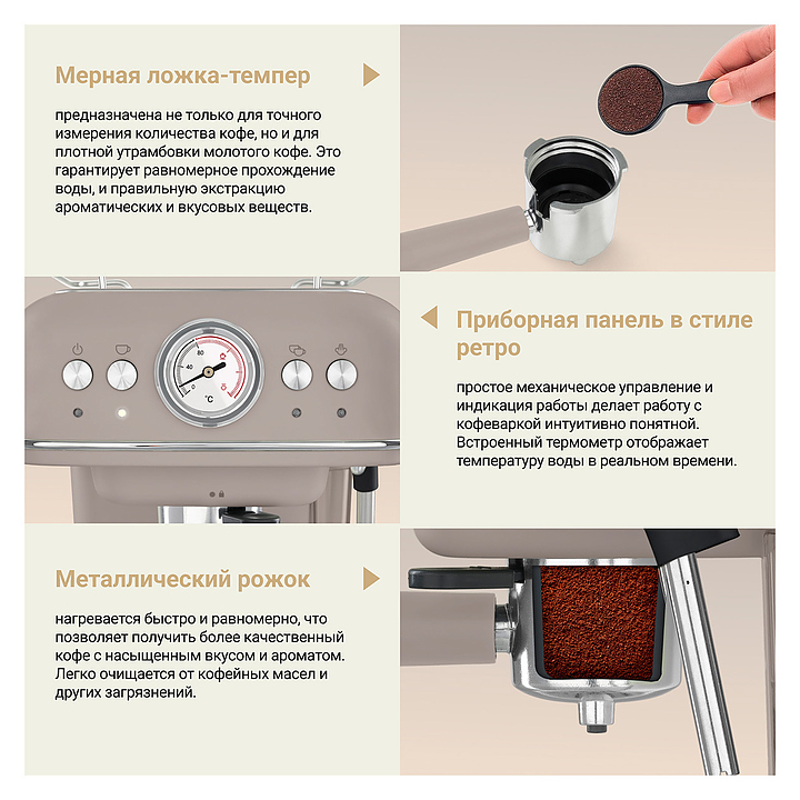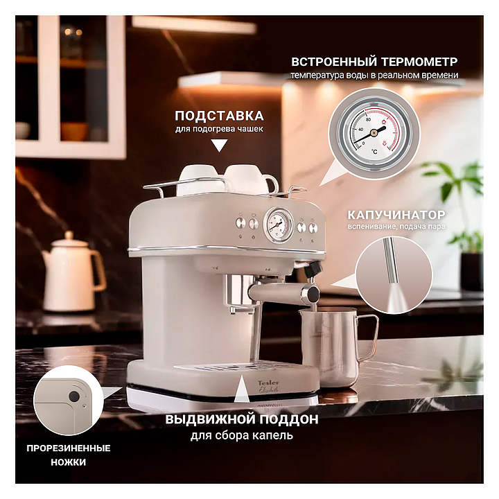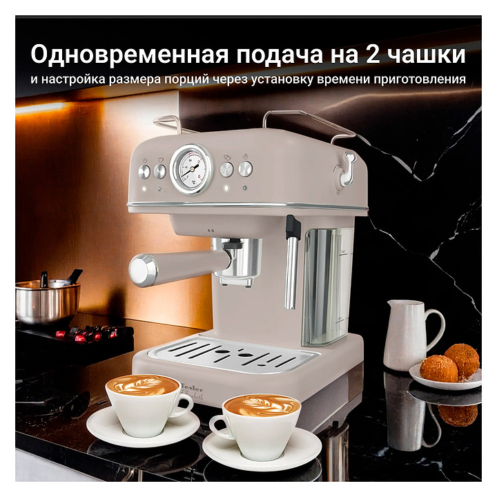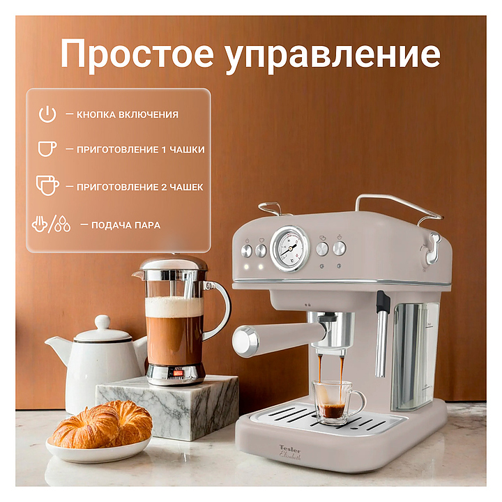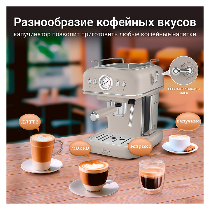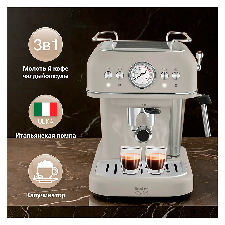 Рожковая кофеварка TESLER Elizabeth ECM-245 SAND GREY 950 Вт, песочно-серый