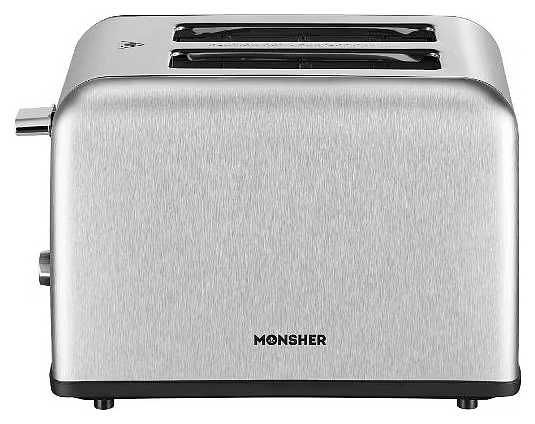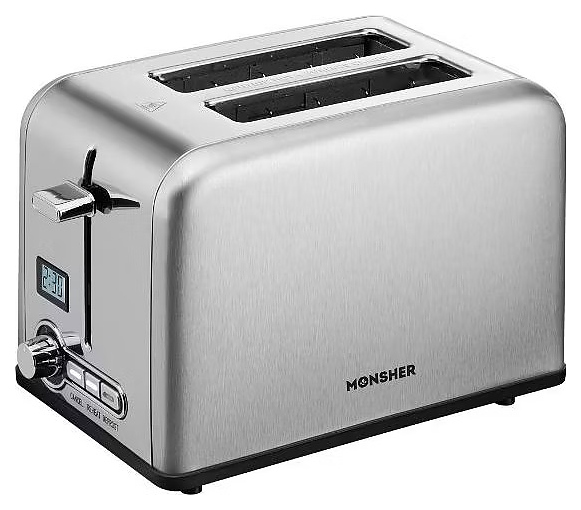 Тостер Monsher MT 500 Acier используется в домашних условиях для обжаривания ломтиков хлеба различных сортов. Модель оснащена 2 слотами для тостов, кабелем питания с вилкой, электромеханической панелью управления с рычагом для загрузки хлеба, поворотным переключателем, нажимными функциональными клавишами и цифровым дисплеем индикации. Корпус прямоугольно ориентированной формы выполнен из металла с сатинированной поверхностью серебристого оттенка, основание – из черного пластика, фурнитура с поверхностью оттенка хром, упаковка – картонная коробка. В комплект поставки входят инструкция по эксплуатации, гарантийный талон и заводская упаковка. Особенности: