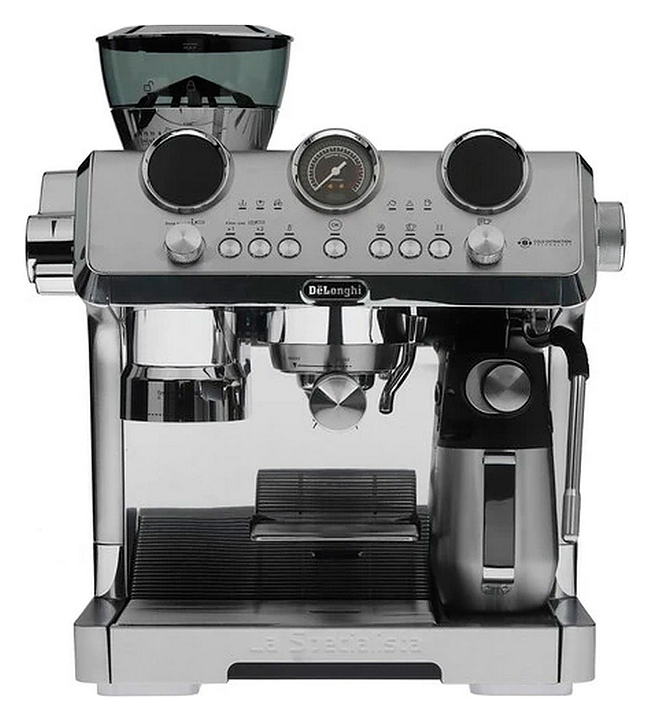 Кофеварка рожковая De'Longhi EC 9885.M предназначена для приготовления молотого кофе и напитков на его основе в гостиницах, офисах и домашних условиях. Модель оснащена встроенной кофемолкой и профессиональной системой Sensor Grinding Technology, обеспечивающей безупречную точность помола. Корпус выполнен из нержавеющей стали. Комплектация: