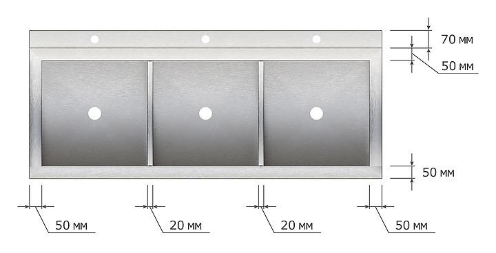 Моечная ванна Мебель Фронт Бизнес ВМБ 1200/603 предназначена для мытья посуды, кухонного инвентаря и продуктов на предприятиях общественного питания и торговли. Модель оснащена бортом, 3 отверстиями для смесителей, разборным каркасом, сварной емкостью и обвязкой. Регулируемые по высоте ножки позволяют компенсировать неровности пола. Каркас выполнен из оцинкованного уголка, емкость - из нержавеющей стали AISI 430. Дополнительные характеристики: