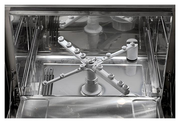 Посудомоечная машина с фронтальной загрузкой Dihr GS 50 используется в барах, ресторанах и гостиницах для мойки стаканов, чашек, небольших тарелок и приборов. Обтекаемая форма свода предотвращает падение капель. Встроенный слив полностью удаляет воду из камеры. Корпус выполнен из нержавеющей стали. В комплект поставки входят корзина для стаканов, корзина для тарелок, вставка для столовых приборов. Особенности: