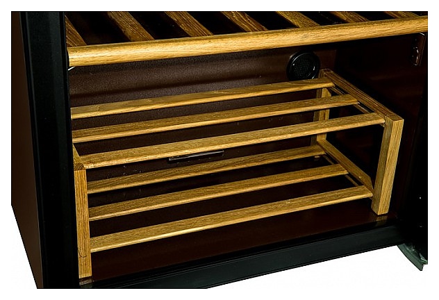 Винный шкаф POLAIR DW102-Bravo предназначен для демонстрации, хранения и создания оптимальных условий для сохранения всех вкусовых свойств разливного вина на предприятиях общественного питания, торговли, в барах, ресторанах, специализированных магазинах, частных домах или квартирах. Модель оснащена 2 навесными полками и нижней двухуровневой подставкой. Внешняя и внутренняя обшивка корпуса выполнена из окрашенной оцинкованной стали, полки - из дуба, дверца - из тонированного стекла с ИК и УФ защитой с рамой из алюминия черного цвета. Оборудование рассчитано на работу при температуре окружающей среды до 32 °С и относительной влажности воздуха до 60%. Особенности: