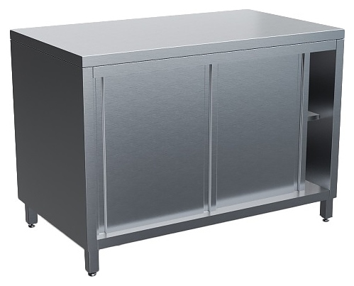 Стол-тумба Rada СТТЧ-К-18/6 используется на предприятиях общественного питания и торговли для обработки пищевых продуктов, а также хранения посуды, инвентаря и тарированных пищевых продуктов. Модель оснащена закрытым отделением со сплошной полкой и дверьми-купе. Столешница, двери, полка и борт выполнены из листовой нержавеющей стали марки AISI 430, каркас – из профиля квадратного сечения из нержавеющей стали марки AISI 430. Изделие поставляется в собранном виде. Особенности: