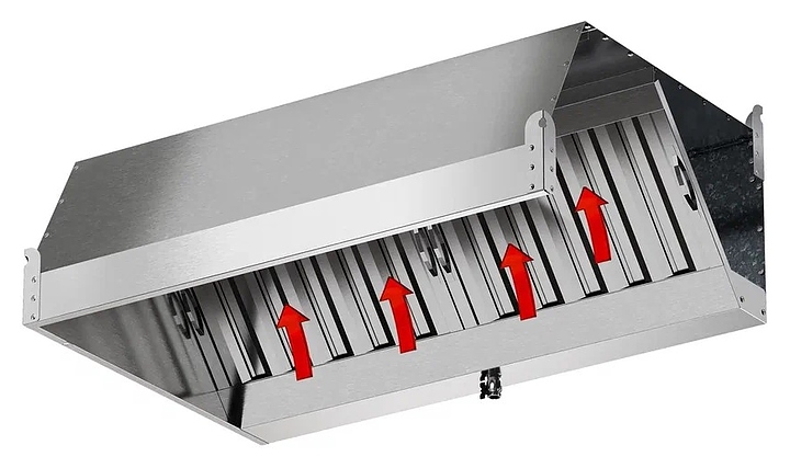 Вытяжной зонт Мебель Фронт ЗВН 03 используется на предприятиях общественного питания и торговли для установки над различным тепловым оборудованием и очистки воздуха от пара, гари и жира в процессе приготовления блюд. Модель оснащена встроенным нержавеющим жироуловителем и врезкой для оттка воздуха. Корпус выполнен из нержавеющей стали AISI 430, задняя стенка - из оцинкованной стали. Дополнительные характеристики: