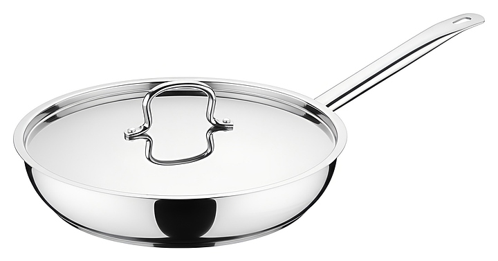 Крышка MGSteel 79198 используется совместно с наплитной посудой подходящего диаметра для приготовления широкого спектра блюд на любых типах варочных поверхностей, включая индукционные, на предприятиях общественного питания и торговли, а также в домашних условиях. Модель оснащена слегка выпуклой поверхностью, заглубленной относительно кромки для надежной фиксации на ободке совместимой емкости, и дугообразной рукояткой. Изделие выполнено из высококачественной нержавеющей стали с серебристой поверхностью. Дополнительные характеристики: