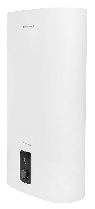 Электрический накопительный водонагреватель Royal Thermo 50 Citadel Unic используется в местных системах водоснабжения для постоянного автономного обеспечения горячей водой одной или нескольких точек водоразбора таких как санитарные узлы, кухни в жилых и загородных частных домах, а также на других бытовых и хозяйственных объектах. Модель оснащена двухкомпонентным внутренним баком, погружным трубчатым электронагревателем (ТЭНом), кабелем питания с евровилкой, съемной крышкой, расположенной на фасаде электромеханической панелью управления, расположенными на крышке резьбовыми патрубками для подвода холодной и выхода горячей воды. Уплощенный корпус овального сечения выполнен из стали с антикоррозийным покрытием белого цвета, внутренний бак – из высококачественной нержавеющей стали марки AISI304 с высоким содержанием антикоррозионных легирующих элементов хрома и никеля, ТЭН – из меди, теплоизоляция – из пенополиуретана, панель управления черного цвета, переключатель с серебристой окантовкой.