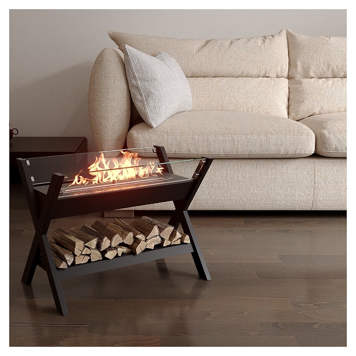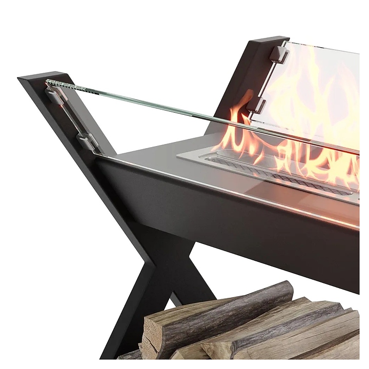 Биокамин Royal Thermo RTBFP-F590AL Altai используется в качестве обогревателя, а также для украшения интерьера и создания уютной атмосферы в жилых помещениях. Модель оснащена топливным модулем с решеткой сверху и защитными экранами в виде прозрачных панелей по широким сторонам, полкой для хранения декоративных поленьев и инвентаря снизу и X-образными опорными боковинами. Опорные боковины, корпус топливного модуля и полка для хранения выполнены из стали с покрытием порошковой эмалью черного цвета, камера, верхняя панель и пламегаситель топливного модуля – из нержавеющей стали с серебристой поверхностью, защитные экраны – из закаленного стекла. Комплектация:
